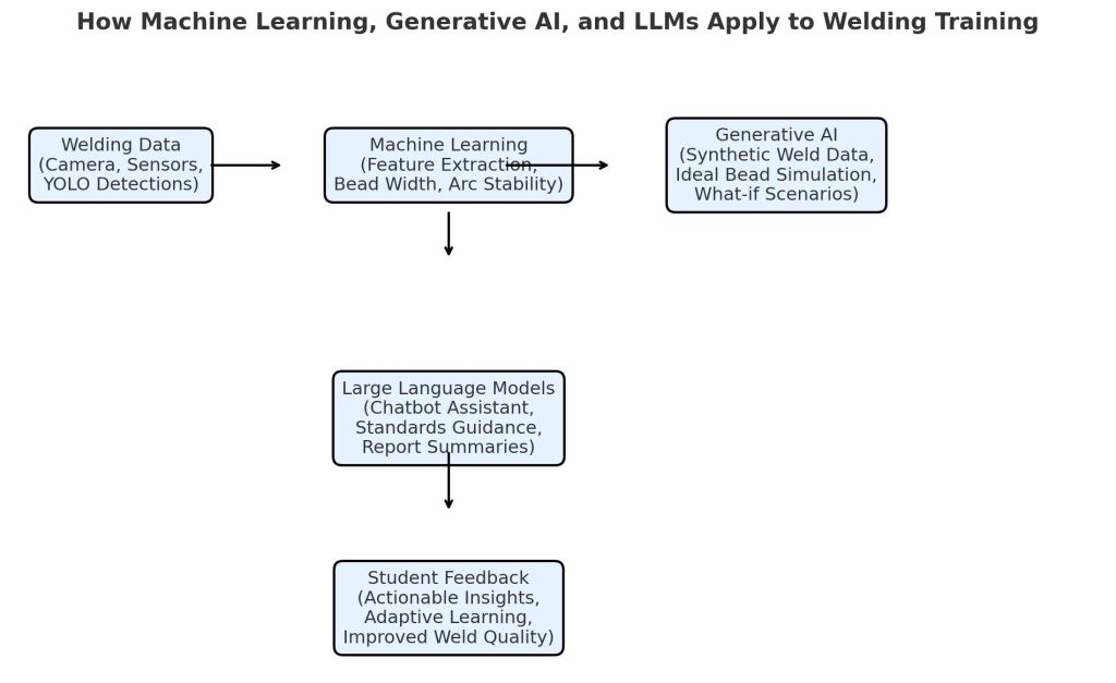 This study positions welding as a test case for the application of AI-assisted instructional systems, leveraging machine learning, generative AI, and large language models to provide adaptive feedback and personalized training. By integrating these technologies into welding education, the project establishes a broader research agenda around adaptive learning in skilled trades. The outcomes are intended not only to enhance trainee performance in welding but also to lay a foundation for future innovation in STEM workforce education, where AI-driven systems can support scalable, individualized learning across technical domains.